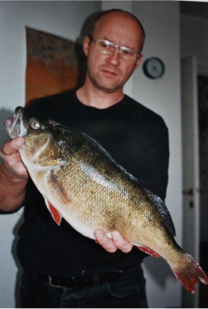 Fisken huggede på en mellemstor gedde-wobler på en 4-5 meter vand langs med grøden nede over bunden. Og jeg troede først at det var en lille sandart, da jeg så den ved overfladen. Da den kom ind i båden havde jeg kun en 15 kilos vægt, som jo ikke duede til at veje den. Så jeg tog fisken med til stationen i Holte for at få vejet den på bismar-vægten: hele 1,95 kg.