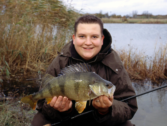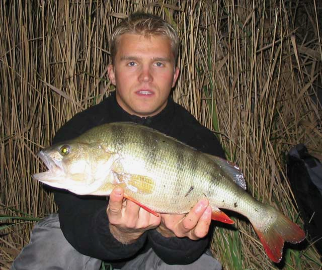 Jesper Bjerg Pedersen med hans fine aborre på 1850 gr. Aborre Jesper Bjerg Pedersen med hans fine aborre på 1850 gr.